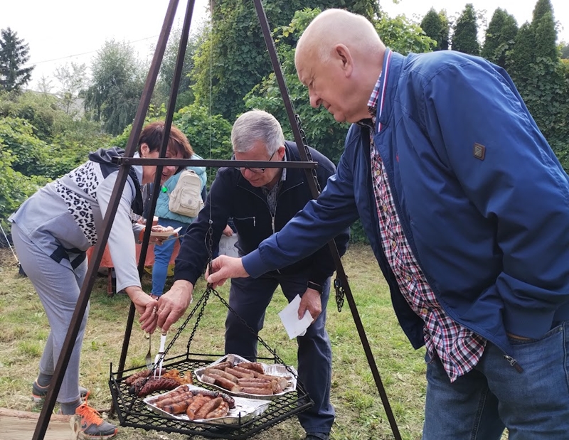 Każdego roku na zakończenie „Kulturalnych Śród Parkowych” organizujemy ognisko. Tym razem kol. Wanda Polańska udostępniła teren na swojej posesji. Kol. Andrzej i Zbyszek pomogli Wandzi uporządkować plac, czyli skosić trawę i ją uprzątnąć. Zostało przygotowane palenisko na grilla. Stoły, ławy i krzesełka, które użyczyła Wandzia. O godzinie 15 przybyli zainteresowani studenci przynosząc smaczne jedzenie. Gdy wszyscy wyłożyli na stoły swój prowiant, było tego bardzo dużo. Wszystko smaczne i wyglądające apetycznie kusiło towarzystwo do konsumpcji. W tle słychać było muzykę, o którą zadbał kol. Mirek. Mirek to nasz etatowy dyskdżokej. Zawsze można na niego liczyć. Rozmowom i żartom nie było końca. Panowie zajęli się pieczeniem kiełbasek na grillu. Gdy towarzystwo posiliło się, ruszyło do tańca. Zgodnie z naszą zasadą, aby nie bolały kości i mięśnie należy się gimnastykować. Cóż może być lepsze od tańca w miłym towarzystwie. Czas szybko mija i ognisko pomału dogasa. Należy posprzątać po zabawie. Pozostawiamy po sobie porządek, by gospodyni nie musiała robić tego za nas. Dziękujemy wszystkim, którzy uczestniczyli w naszej imprezie za to, że chcieli spędzić miło środowe popołudnie. Szczególne podziękowania należą się Wandzi Polańskiej za udostępnienie terenu i jego przygotowanie, za koszenie Andrzejowi Kasperkowi i Zbyszkowi Majewskiemu i staroście od imprez Ewie Kasperek oraz organizatorce Śród Parkowych Eli Ciepluch. Spotkamy się za rok.