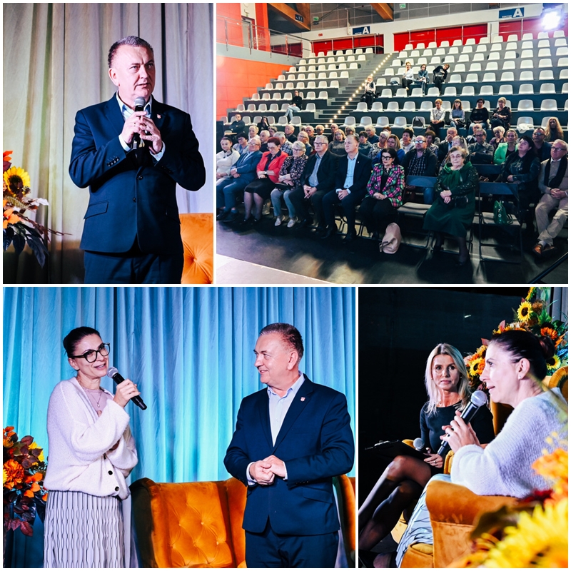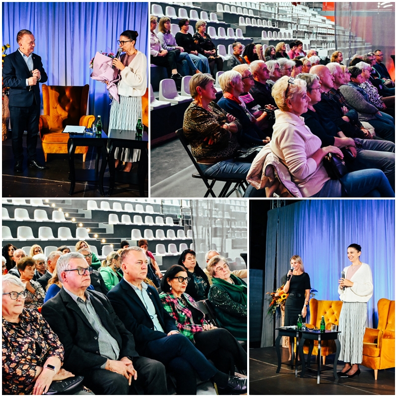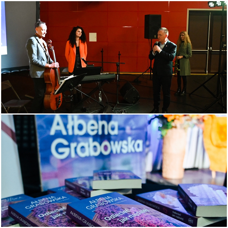 Rozmowę z autorką poprowadziła dyrektor Centrum Kultury i Sportu w Chęcinach, Renata Janusz, która z ciekawością wprowadziła publiczność w świat twórczości gościa. Podczas spotkania uczestnicy mieli okazję poznać wiele fascynujących faktów z życia Ałbeny Grabowskiej. Z wykształcenia jest ona lekarką, doktorem nauk medycznych, specjalizującą się w neurologii i epileptologii. Jak sama przyznaje, ogromną inspirację czerpie ze swoich bułgarskich korzeni – jej imię, oznaczające „kwitnącą jabłoń”, doskonale oddaje naturę jej twórczości: pełną życia, emocji i refleksji. Ogromną popularność przyniosła jej bestsellerowa saga „Stulecie Winnych”, która doczekała się ekranizacji i na stałe wpisała w kanon współczesnej polskiej literatury obyczajowej. W swoich powieściach Ałbena Grabowska z niezwykłą wrażliwością ukazuje przede wszystkim silne, charyzmatyczne kobiety, czerpiąc inspirację z własnych doświadczeń, pracy zawodowej i obserwacji świata. Pod koniec rozmowy był czas na pytania od widzów, na które chętnie odpowiadała pisarka. Wydarzenie uświetnił poruszający koncert duetu Maja i Roch. Ich muzyka wspaniale dopełniła atmosferę tego literackiego wieczoru. Na koniec chętni mogli nabyć książkę pisarki, zdobyć personalizowaną dedykację i porozmawiać o swoich czytelniczych spostrzeżeniach.