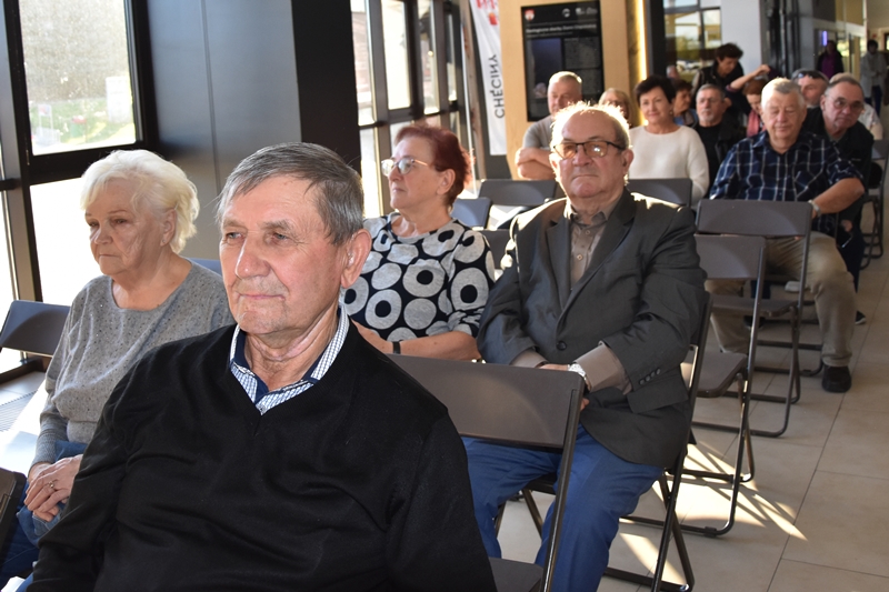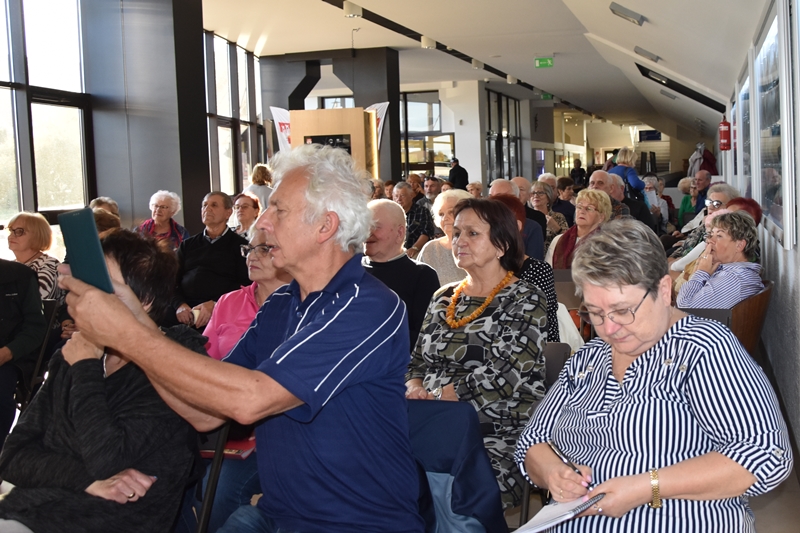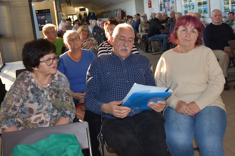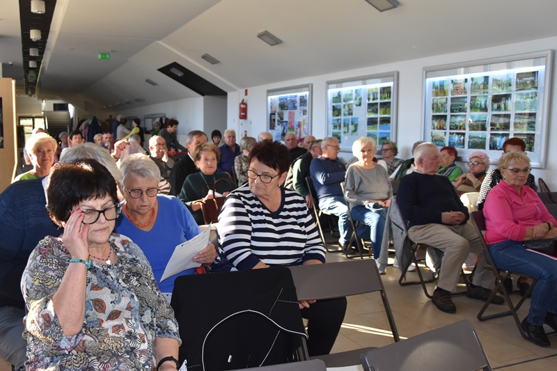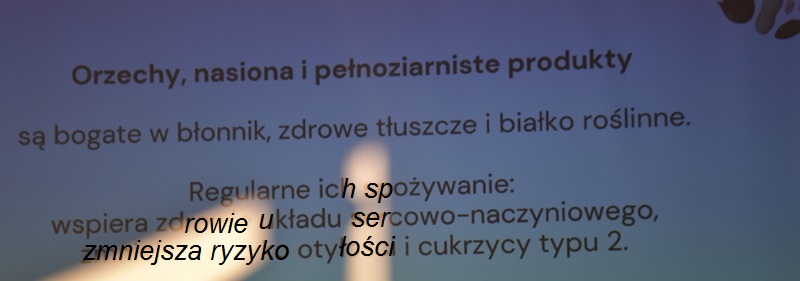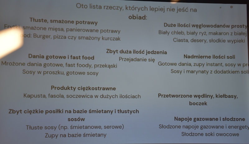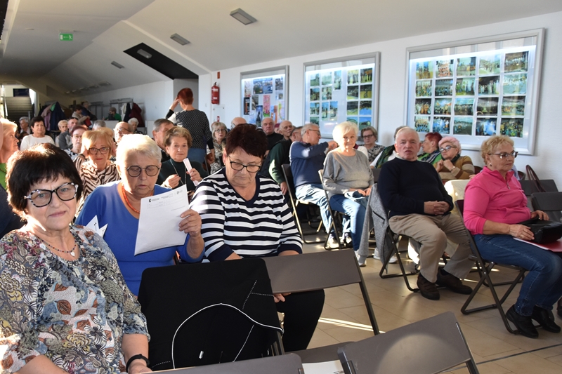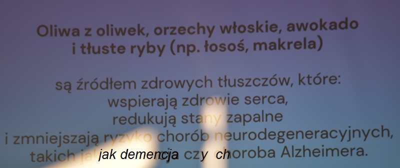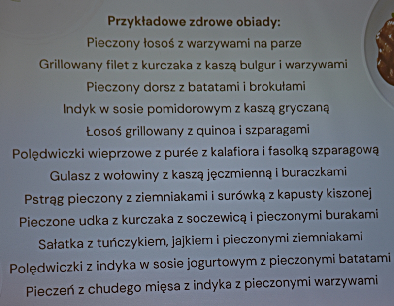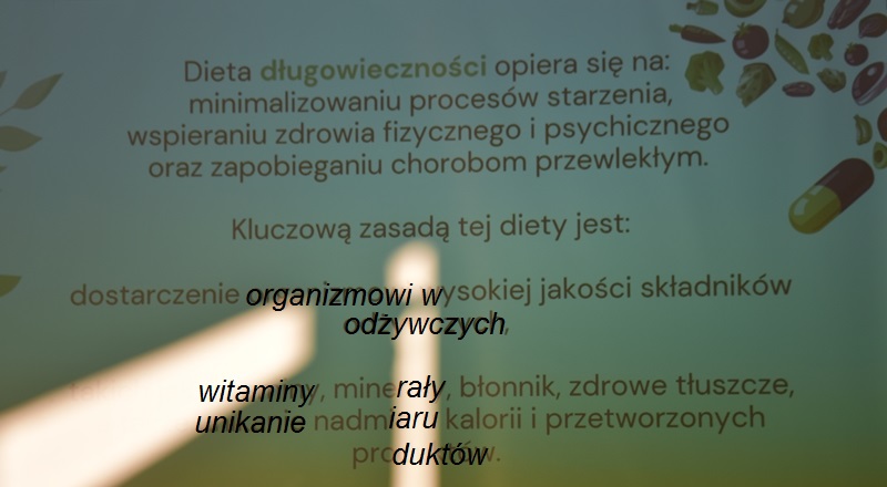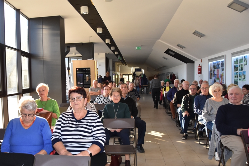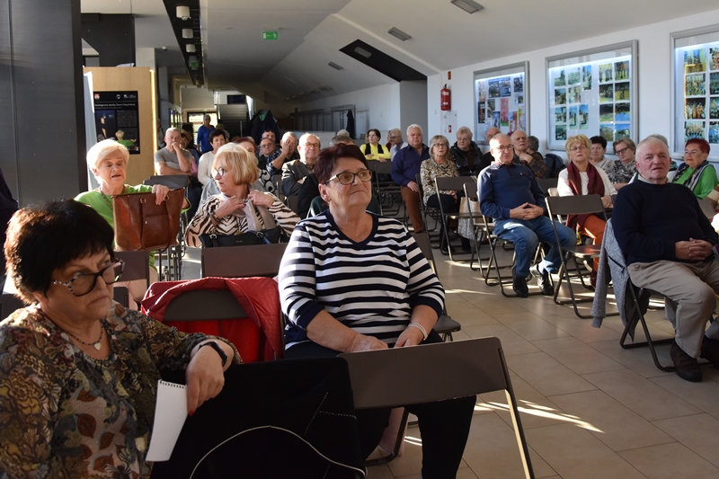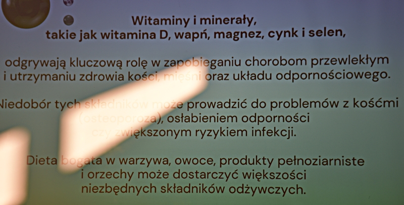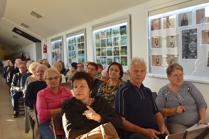 Pani Olga Piwowar - dietetyk, która przedstawiła nam ,,dietę długowieczności’’. W diecie seniora należy uwzględnić spożywanie dużej ilości: warzyw i owoców, które dostarczają niezbędnych antyoksydantów, witamin i minerałów; orzechów, nasion i pełnoziarnistych produktów, które wspierają układ sercowo-naczyniowy przez co zmniejszają ryzyko cukrzycy i otyłości; białka - najlepiej pochodzenia zwierzęcego (powoduje utrzymanie masy mięśniowej, uczucie sytości, wspiera regenerację komórek); oliwy z oliwek, awokado, które są źródłem zdrowych tłuszczów, redukują stany zapalne, zmniejszają ryzyko chorób neurodegeneracyjnych (demencja, choroba Alzheimera); kwasy omega-3 zawarte między innymi w rybach, które są niezbedne do prawidłowego funkcjonowania mózgu. W celu uzupełnienia mikroflory jelitowej należy spożywać probiotyki (jogurt, kefir) i prebiotyki (czosnek, cebula, banany), które stanowią pożywkę dla dobrych bakterii i wspomagają ich rozwój. Bardzo ważna w diecie jest ilość wypitej wody, która pomaga w trawieniu, utrzymaniu odpowiedniej temperatury ciała, wpływa na zdrowie skóry i nerek. Osoby starsze często nie odczuwają pragnienia co w efekcie może doprowadzić do odwodnienia. W ciągu doby należy wypić 1,5-2 litry wody. W diecie seniora należy też uwzględnić witaminy i minerały takie jak : wit.D, wapń, magnez, cynk i selen, ponieważ pomagają w zapobieganiu chorobom przewlekłym i wspomagają układ odpornościowy. W prawidłowej diecie należy unikać wszelkiej przetworzonej żywności, bogatej w sól, cukry, tłuszcze zwierzęce i dodatki chemiczne. Nieodłącznym elementem długowieczności jest regularna aktywność fizyczna, nigdy nie jest za późno, aby zadbać o siebie i o swoje zdrowie.