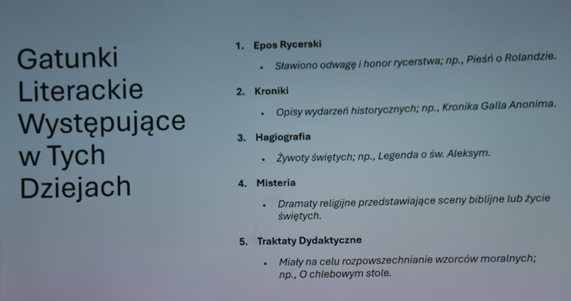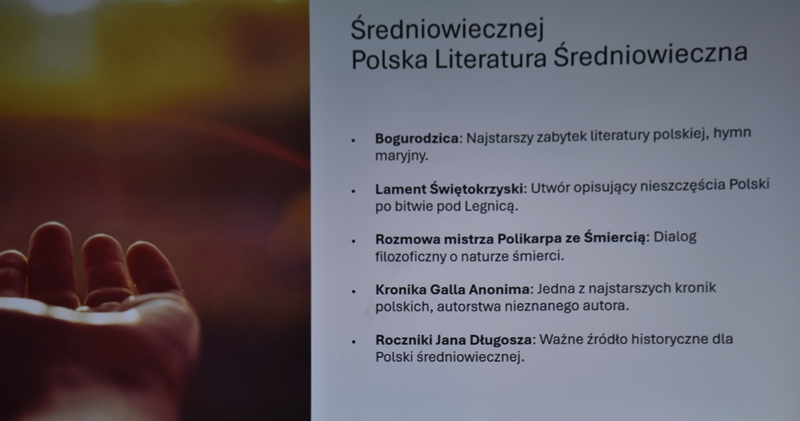 6 lutego 2025 roku odbył się wykład na temat; „Literackie tematy średniowiecza” wygłoszony przez Pana Dyrektora Tomasza Żelichowskiego. Jak przystało na nauczyciela polonistę, wykład był konkretny, jednocześnie ciekawy i przekazany w przystępny sposób. To już kolejny wykład prowadzony dla słuchaczy Chęcińskiego Uniwersytetu Trzeciego Wieku, przez Pana Tomasza. Na spotkanie z Panem Dyrektorem przychodzimy z wielką ochotą. W skupieniu i ciszy wsłuchujemy się w treści nam przekazywane.