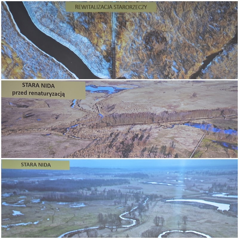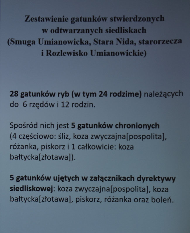 Ponidzie to mozaika siedlisk przyrodniczych. Właśnie tu znajdują się duże pokłady gipsu. Wskutek osuszenia bagien i łąk wyginęły storczyki porastające dawniej ten teren. Nastąpił brak wody, zaczęły się pojawiać pożary suchych traw Zmieniło się koryto rzeki Nidy. Aby ratować naturalne siedliska ptaków, roślin itd. opracowano projekt „LIFE Renaturyzacja Śródlądowa Delty Rzeki Nidy”. W ramach projektu przywrócono dawne łąki tereny bagienne i odtworzono stare koryto meandrującej rzeki Nidy. Nastąpiło udrożnienie 12 km rzeki, przywrócono naturalne rozlewiska np. rozlewisko Umianowice o dużej pojemności wód. Pojawiły się ryby, aktualnie zauważono 28 gatunków. Rzeka Nida to raj dla wędkarzy. Powstały punkty obserwacyjne ptaków np. bielika, błotniaka, czajki i bąka. Zamontowano platformy gniazdowe dla bocianów, które zamieszkały. Na tym terenie obecnie występują traszki grzebieniaste w oczkach wodnych obok lasów łęgowych. Pojawiły się małże, które filtrują wodę. Małże wykorzystywane są w oczyszczalniach do kontroli jakości wód. Dzięki pracom naukowców przyrodników przeprowadzono reintrodukcję żółwia błotnego. Na podmokłych terenach lasów łęgowych np. olchy, jesiona pojawiły się inne zwierzęta. Powstał kompleks leśny Młodzawy. Odtworzono siedliska łąkowe dla roślin i zwierząt. Na tym terenie hoduje się krowy w naturalnych warunkach między innymi polską rasę czerwoną, koniki polskie - bardzo wytrzymałe, sprytne. Powstały zagrody dla owiec i kóz. Organizowane są plenery malarskie, warsztaty edukacyjno – przyrodnicze dla dzieci i młodzieży w celu przybliżenia naturalnych warunków przyrodniczych. Celem ośrodka jest poznanie i obserwacja przyrody w naturalnym środowisku. Serdecznie dziękujemy Panu dr T. Haładkiewiczowi z Ośrodka Edukacji Przyrodniczej w Umianowicach za zapoznanie nas z malowniczymi urokami Ponidzia.