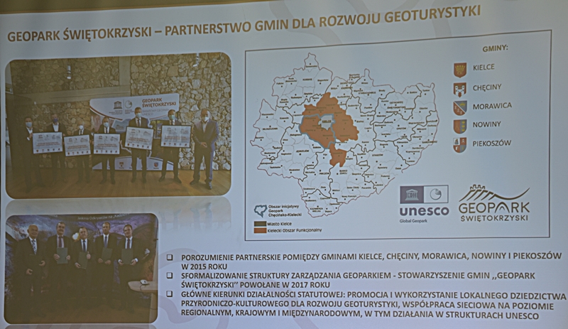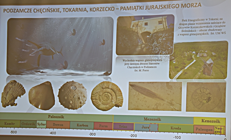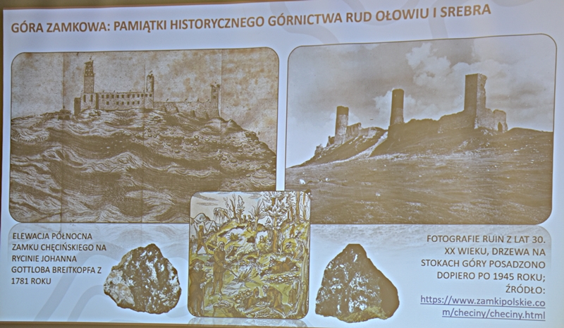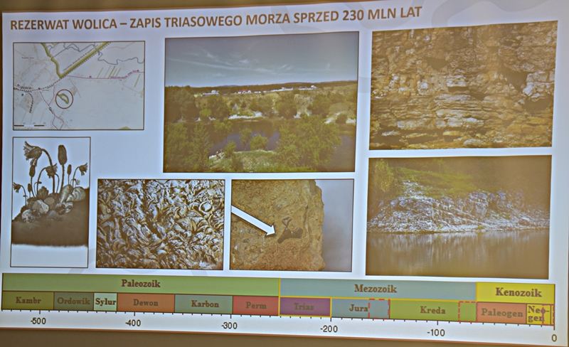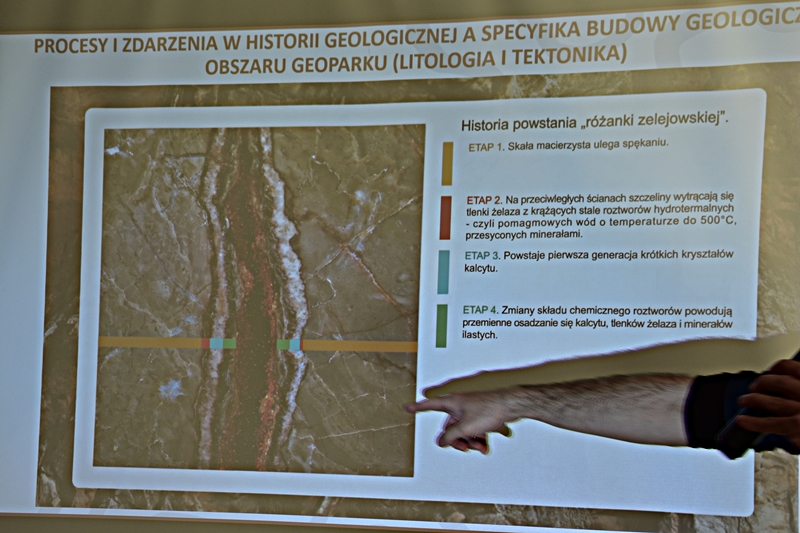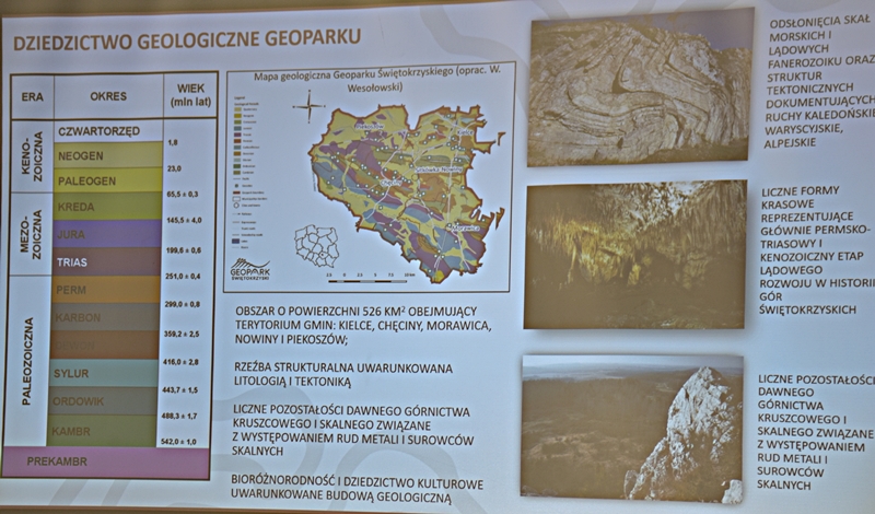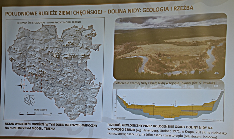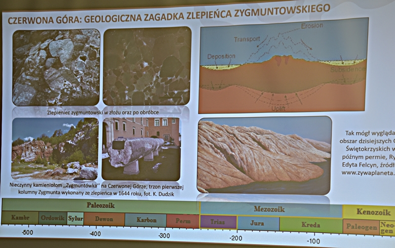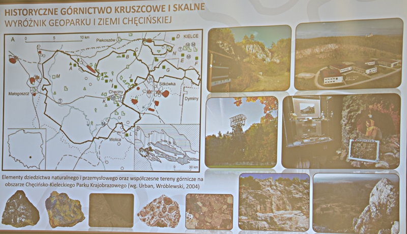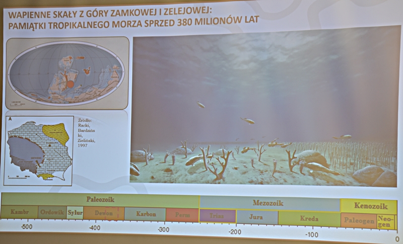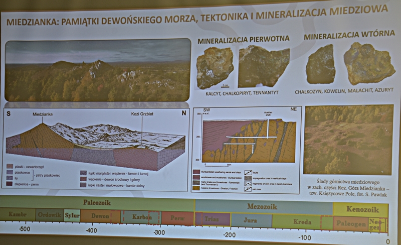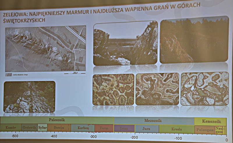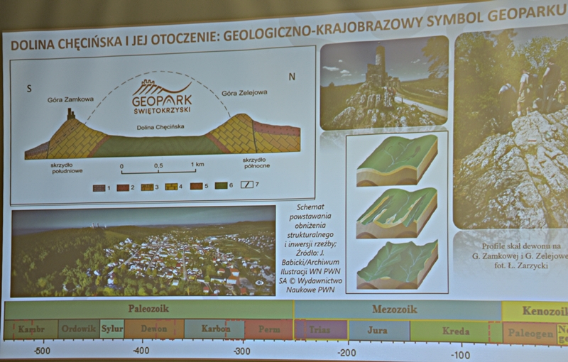 Wykład przybliżył nam w ciekawy sposób powstawanie sprzed milionów lat ukształtowanie się ziemi chęcińskiej z Górą Zamkową, Zelejową, Rzepką, Żakową, Miedziankę, Jaskinię Piekiełko, Raj oraz Dolinę Chęcińską. Przed milionami lat było tu morze, klimat prawie równikowy. Procesy geologiczne zachodziły bardzo powoli i trwały miliony lat. Dlatego Ziemia Świętokrzyska, a szczególnie stare skały dewońskie na powierzchni Ziemi Chęcińskiej przyciągają geologów i badaczy na nasze tereny. Ciekawostką jest proces powstawania Doliny Chęcińskiej i okolicznych gór, w przeszłości powstawanie licznych kopalń. Słynne są na całym świecie chęcińskie marmury, różanki. Kiedyś kopalnie rudy miedzi, żelaza, ołowiu, srebra wydobywane w okolicach Chęcin oraz kopalnie na Miedziance, Zelejowej, Bolechowicach, Stokówce, Czerwonej Górze "Zygmuntówka". Obecnie powstał Geopark i rezerwaty przyrody nieożywionej, które są dziedzictwem kulturowym Ziemi Świętokrzyskiej.