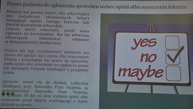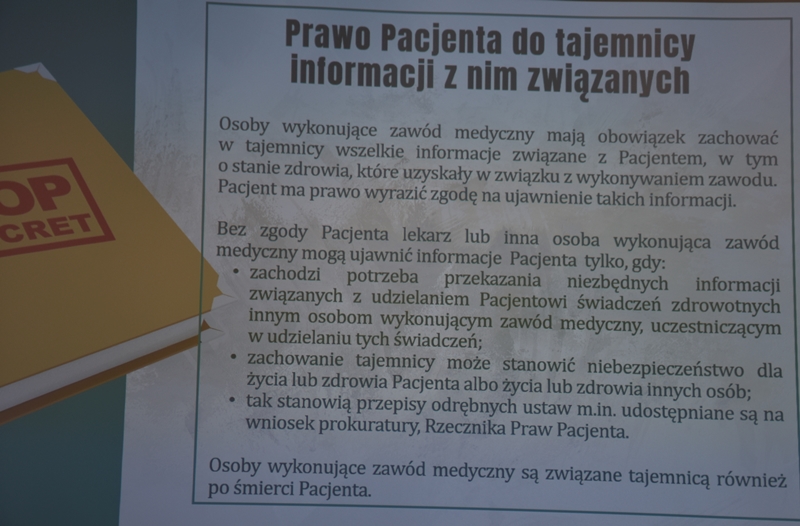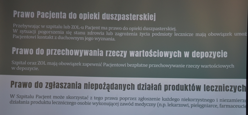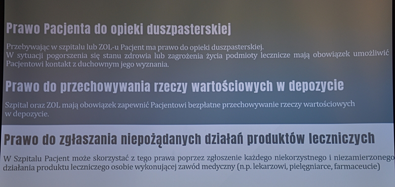 Wykład poprowadził Pan mecenas Jakub Pawelec. Pełnomocnik ds. Praw Pacjenta. Wojewódzki Szpital Specjalistyczny im. Św. Rafała w Czerwonej Górze.