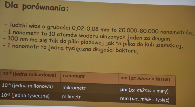 Przed przystąpieniem do wykładu Pan Karol Ciepluch przekazał nam kilka informacji o swojej pracy, w celu nawiązania do tematu wykładu. Okazuje się, że jest on mieszkańcem naszej Gminy, który po kilku latach powrócił do Chęcin. Na dzisiejszym wykładzie były panie, uczące naszego wykładowcę w Liceum w Chęcinach. Miło, ale jednocześnie trochę stresująco jest wystąpić przed swoimi nauczycielami. „Zawsze interesowały mnie zagadnienia z dziedziny biologii, dlatego swoją drogę naukową poprowadziłem w tym kierunku”, powiedział nasz dzisiejszy wykładowca. Nanotechnologia to najszybciej rozwijająca się dziedzina nauki. To połączenie fizyki, chemii, biologii, biotechnologii, medycyny, farmacji, informatyki, czy inżynierii. Stwarza ona nieograniczone możliwości rozwoju wielu sfer życia człowieka. Nanotechnologia zajmuje się tworzeniem różnorodnych struktur oraz ich głęboką analizą na poziomie atomów i cząsteczek. Dziedzina nauki narodziła się w połowie XX wieku. Wykorzystanie technologii nano jest bardzo duże. Pojawiają się nowe odkrycia. W Polsce ta dziedzina potężnie się rozwija. Uniwersytet Jana Kochanowskiego w Kielcach wydział biologii zajmuje się właśnie tymi zagadnieniami. Od wielu lat współpracuje z innymi Uniwersytetami na świecie. „Mam przyjemność współpracować z wieloma wybitnymi naukowcami i rozwijać swoje umiejętności i wiedzę”- powiedział dr Karol Ciepluch. „Postaram się przekazać Państwu chociaż namiastkę informacji z tak ciekawego, a jednocześnie ogromnego zagadnienia”. Oto przykłady wykorzystania nanotechnologii w życiu człowieka. Jednym z problemów współczesnej medycyny jest zbyt powszechnie stosowanie antybiotyków, co powoduje pojawienie się szczepów bakteryjnych opornych na antybiotyki. Rozwijająca się prężnie nanotechnologia przyczyniła się do powstania alternatywnych środków przeciwbakteryjnych. Są to nanocząsteczki srebra, złota i miedzi. Również podawanie leku w postaci nanocząsteczki jest mniej inwazyjne i nie jest tak dużym obciążeniem dla organizmu. Dawka może być dostosowana precyzyjnie do danego pacjenta. Pomaga to stworzyć nowe preparaty i ulepszyć już istniejące. Nanotechnologia jest wykorzystywana w bezpośredniej walce z nowotworami. Nanocząsteczki wykorzystywane są także w kosmetologii oraz higienie i dezynfekcji. Wykorzystanie w kosmetykach zwiększa ich przyswajanie oraz skuteczność działania. Nanoczasteczki srebra pomagają konserwować preparaty kosmetyczne. Za pomocą nanosrebra zabezpiecza się artykuły dedykowane dzieciom. Nanosrebro znajduje się także w papierze toaletowym, podpaskach, mydle, czy w gąbkach do mycia. Opatrunki z wykorzystaniem nanotechnologii są jałowe i mają właściwości bakteriobójcze. Przyspieszają proces gojenia ran. Srebrem pokrywa się odzież medyczną, sprzęty medyczne, ubrania dla sportowców, hamuje bowiem wydzielanie się przykrego zapachu. Nanotechnologia w branży samochodowej dotyczy m.in. nadwozi i desek rozdzielczych, lakierów itp. zwiększa to bezpieczeństwo i odporność pojazdów na uszkodzenia. W budownictwie nanomateriały daje się do tynków, lakierów i farb, dzięki czemu te produkty, które uzyskamy mają działanie bakteriobójcze. Istnieje wiele przykładów zastosowania nanotechnologii w naszym życiu. Jest to bardzo ciekawe zagadnie z ogromnym potencjałem rozwojowym. Ten temat to temat rzeka, ale dzięki wysłuchaniu tego wykładu mogliśmy chociaż trochę go sobie przybliżyć. Wykład wzbudził duże zainteresowanie ze strony słuchaczy Chęcińskiego Uniwersytetu Trzeciego Wieku. Mamy nadzieję, że to nie ostatni wykład z tej dziedziny. W podziękowaniu za przekazanie wiedzy w sposób przystępny i zrozumiały wykładowca dr hab.Karol Ciepluch prof. UJK otrzymał gromkie brawa. On sam podsumowując dzisiejsze spotkanie stwierdził, że spotkał się z najlepszą grupą studentów.