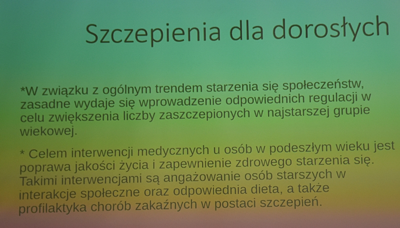 Wykład na temat szczepień dla dorosłych wygłosiła Pani Anna Więch pielęgniarka z Przychodni w Chęcinach.