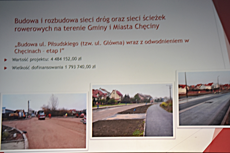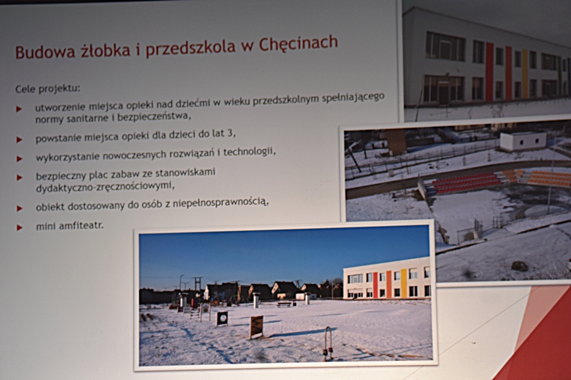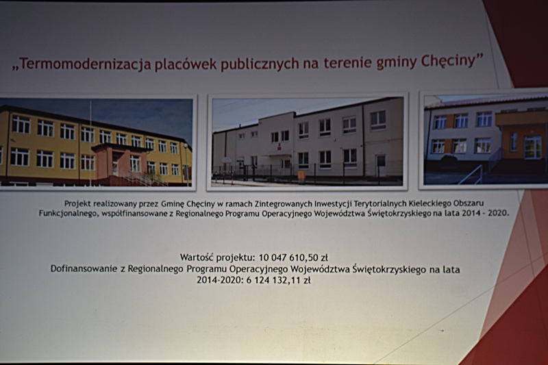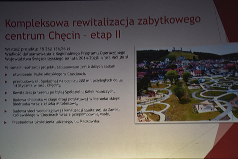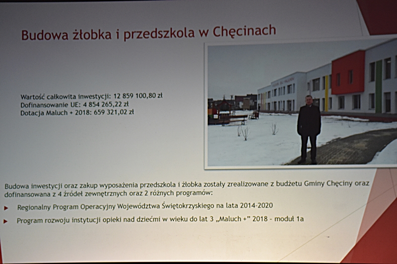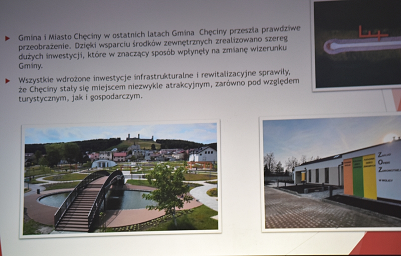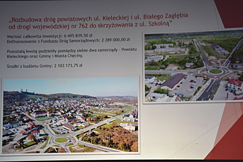 Dzięki pozyskanym funduszom z „Projektów ze środków zewnętrznych” zrealizowano wiele inwestycji w mieście Chęciny jak i na terenie Gminy: Hala widowiskowo-sportowa „Pod Basztami”, która jest siedzibą Centrum Kultury i Sportu; Przedszkole Samorządowe i Żłobek; Park Lipowica i nowoczesna Świetlica; Park Miejski w Chęcinach; Przychodnia w Wolicy; Budowa Nowoczesnej Biblioteki i Domu Seniora. W przygotowaniu: Hala Sportowa przy Szkole Podstawowej w Bolminie; Żłobek w miejscowości Siedlce; Budowa Remizy OSP w Radkowicach; Nowe ulice na powstałych w ostatnich latach Osiedlach. Działania inwestycyjne na terenie Gminy Chęciny umożliwiają wykorzystanie lokalnych zasobów przyrodniczych wraz z ich promocją. Zostało utworzone nowe miejsce do wypoczynku – Miejski Park w Chęcinach i Park w Lipowicy. Dwa nowe ronda wybudowane w okolicy szkoły sprzyja to bezpieczeństwu zarówno uczniów uczęszczających do tej placówki jak i dla większości mieszkańców. W okolicy jednego i drugiego ronda znajduje się wiele sklepów. Trwa także budowa ronda na skrzyżowaniu koło Czerwonej Góry. Cieszymy się, że nasza Gmina tak prężnie się rozwija, że potrafimy pozyskiwać środki zewnętrzne i odpowiednio je wykorzystywać.
