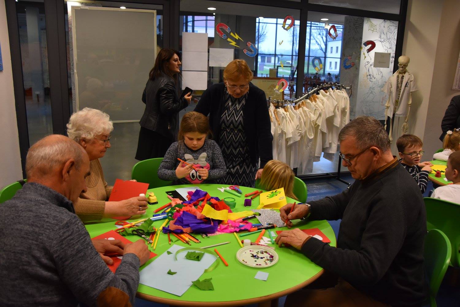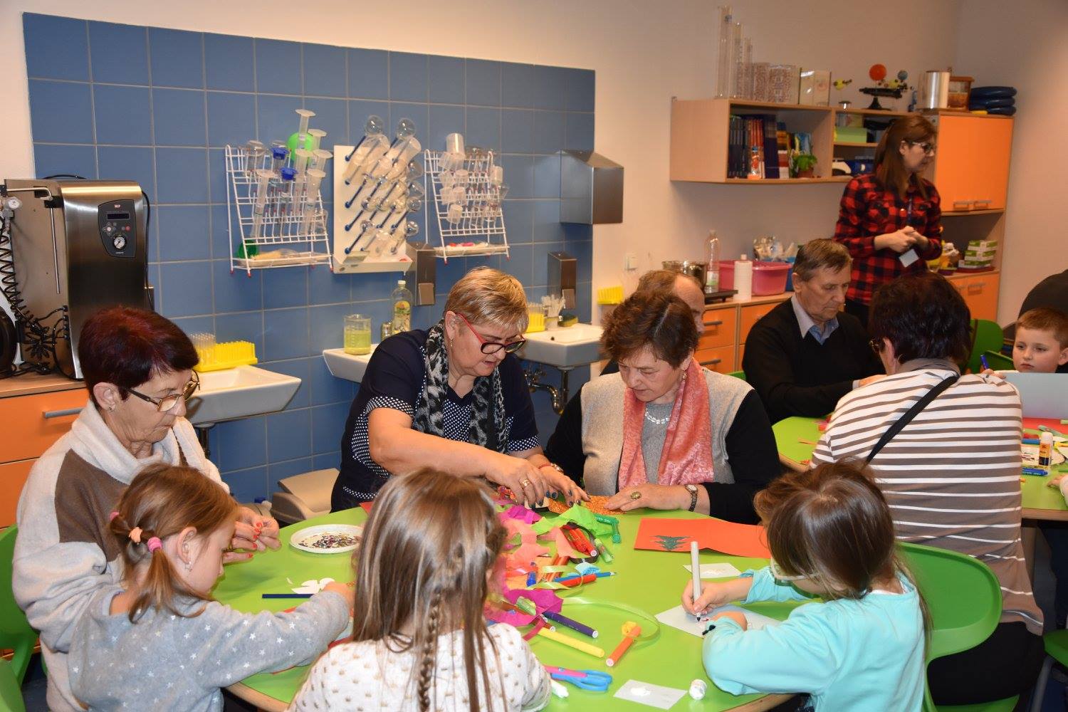 W Podzamczu Chęcińskim w pięknym nowoczesnym obiekcie spotkaliśmy się z dziećmi z najmłodszych klas Szkół Podstawowych z Łukowej, Wolicy, Tokarni. W auli obiektu wszystkich uczestników spotkania przywitała miło, serdecznie i z humorem nasza Pani Prezes. W aktorski sposób nasze koleżanki czytały baśnie i wiersze dla dzieci. Pani Prezes Zenona Dołęgowska przeczytała bardzo lubiany przez dzieci wiersz pt. „Rzepka” Juliana Tuwima. Z przyjemnością najmłodsze i te nieco starsze dzieci wysłuchały ten dowcipny wierszyk. Nasze koleżanki: Wandzia, Ela i wróżka Jadzia przeczytały fragmenty baśni Andersena pt. „Królowa Śniegu”. Wszyscy z przyjemnością słuchaliśmy opowiadania o losach Gerdy i Kaja żyjących w zgodzie i przyjaźni aż do jednego z wiosennych dni.... Swoje zadanie równie świetnie wykonały Seniorki z Domu Opieki Rodzinnej w Pierzchnicy, które przeczytały wiersz „Lokomotywa” Juliana Tuwima. Na zakończenie tej części spotkania dzieci zaśpiewały seniorom „Sto lat...”. Centrum Nauki Leonardo da Vinci jest miejscem dla wszystkich. My „bardzo dorośli” chętnie i z wielkim zainteresowaniem obejrzeliśmy wystawę pt. „Człowiek – niezwykła maszyna”. Tematem wystawy był zdrowy organizm ludzki, dobrze funkcjonujące ludzkie ciało, które pozwala zachwycać sprawnością fizyczną i umysłową. Wystawa uświadamia nam jak złożony jest organizm ludzki i jak wiele posiada czynności życiowych, które utrzymują go w stanie biologicznej równowagi umysłowej i psychicznej. W trakcie oglądania wystawy była możliwość sprawdzenia swojej sprawności. Podczas krótkiej przerwy z przyjemnością delektowaliśmy się kawą, herbatą i ciasteczkami przygotowanymi przez organizatorów spotkania. Następnie razem z dziećmi braliśmy udział w warsztatach artystycznych, gdzie mogliśmy się wykazać zdolnościami manualnymi. Tematem zajęć warsztatowych było przygotowanie kartek świątecznych. Wraz z dziećmi dekorowaliśmy aniołki, bałwanki i gwiazdki. Chętnie skorzystaliśmy z badań profilaktycznych (badanie cukru, mierzenie ciśnienia), które wykonywały panie pielęgniarki ze Szpitala Wojewódzkiego w Kielcach.Cały ten dzień był niezwykle pracowity dla naszego kolegi „fotografa”, który z wielką precyzją wykonywał nam profesjonalne zdjęcia.I tak listopadowy dzień upłynął nam bardzo przyjemnie.