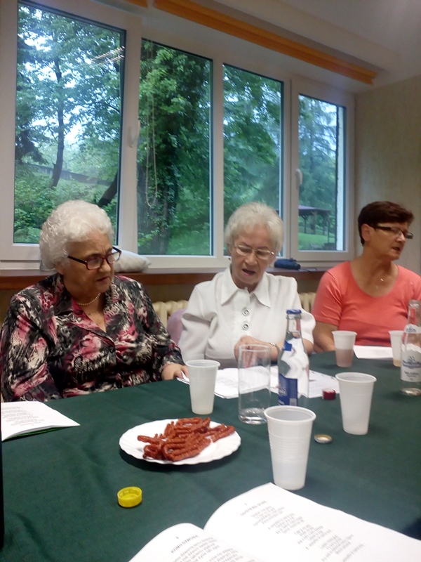Zwiedziliśmy drewnianą Kaplicę Zdrojową ufundowaną przez Załuskich w 1895 roku. Zwróciliśmy uwagę na ołtarz główny neogotycki, drewniany z Matką Boską Uzdrowienia Chorych w otoczeniu świętych. W części wejściowej jest niewielka wystawa świętych i błogosławionych z Podkarpacia. Przy wejściu jest tablica ku pamięci poległych w czasie wojny parafian Iwonicza oraz Krzyż Misyjny. Religijno – historyczno – przyrodniczy spacer zakończyliśmy na placu nowego kościoła. Tym razem zupełnie zawodowym przewodnikiem okazała się koleżanka Marta Syzdół. Po obiadokolacji nasza wspaniała organizatorka wyjazdu Zosia Puchała zaplanowała nam biesiadę w altance obok pensjonatu. Z powodu nagłej burzy altankę zastąpiła świetlica. I tu w bardzo miłej, wesołej atmosferze mogliśmy wykazać się swoimi zdolnościami wokalnymi. Śpiewnik opracowany przez Zosię Puchałę i Ewę Kot okazał się bardzo przydatny. Jednak największą atrakcją tego wieczoru były imieniny kolegi Stasia Króla. Około godz.21 roześmiani i weseli wróciliśmy do swoich pokoi.