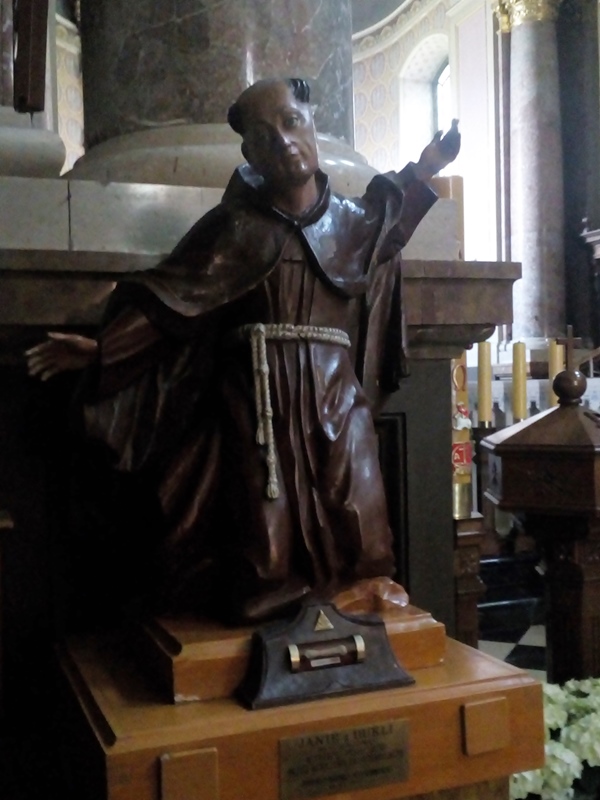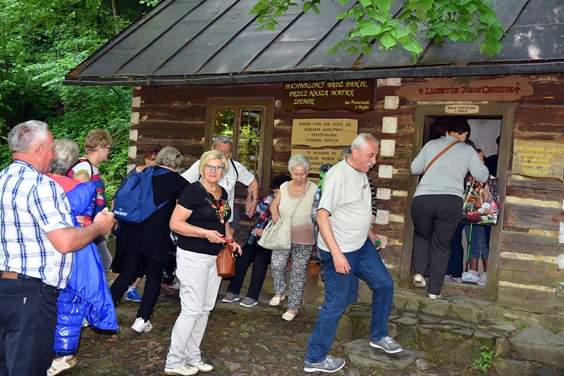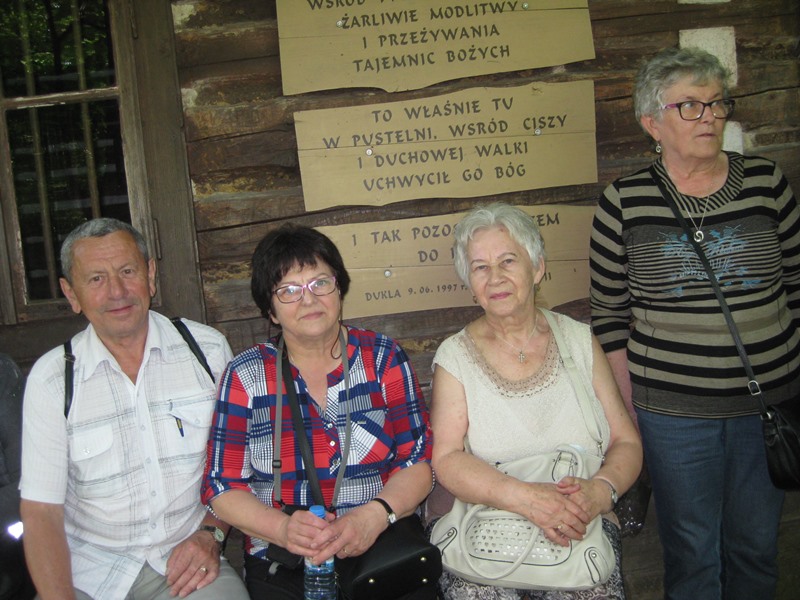 W dniach 9 – 10 czerwca 1997 roku ziemię dukielską nawiedził Jan Paweł II. W pierwszym dniu odwiedził Sanktuarium a następnego dnia podczas mszy św. w Krośnie dokonał kanonizacji św. Jana z Dukli. Przed murami Sanktuarium stoi pomnik św. Jana Pawła II, św. Jana z Dukli i Krzyż Pojednania. Ramiona krzyża oplecione dłońmi poległych żołnierzy różnej narodowości i różnego wyznania. Na tablicach istnieje napis w kilku językach - „Krzyż znaczy – życie jest silniejsze niż śmierć” Jan Paweł II. Podążając śladami Jana z Dukli udaliśmy się na wzgórze Zaświt do pustelni, gdzie zakonnik miał w młodości spędzić kilka lat życia. Odwiedziliśmy chatę pustelnika, która stanowiła jego miejsce odosobnienia. Starano się odtworzyć warunki, w jakich mógł mieszkać św. Jan z Dukli. Wąska prycza, drewniany stół, krzesło, miska do mycia. Drogą prowadzącą przez las i pod górę należało przejść około 300 metrów. Zmęczeni, ale uśmiechnięci dotarliśmy do celu. Jak głosi legenda św. Jan objawił się Marii Amelii z Bruhlów Mniszkowej, właścicielce Dukli we śnie, polecając jej wybudować na miejscu swej pustelni kaplicę. Tak też się stało. Obecna kaplica wzniesionaz początkiem XX wieku jest już trzecią w historii tego miejsca. Znajduje się w niej polichromia przedstawiająca życie św. Jana. Namalowana została przez sanockiego malarza Władysława Lisowskiego. Obok świątyni znajduje się drewniany dom rekolekcyjny oraz taras ze sztuczną grotą. Na ścieżkach wokół kaplicy rozmieszczono kapliczki Drogi Krzyżowej. Jednak ze względuna opady, które miały miejsce dzień wcześniej, dla naszego bezpieczeństwa nie przeszliśmy tą trasą. Uwieńczeniem wędrówki śladami św. Jana z Dukli było źródełko zwane „złotą studzienką”. Według tradycji pątników z Polski i zagranicy, woda z tego źródełka przynosi ulgę w wielu dolegliwościach i chorobach. Zaopatrzeni w wodę wróciliśmy do autokaru. Wycieczkę zakończyliśmy na Słowacji dokonując licznych zakupów.
