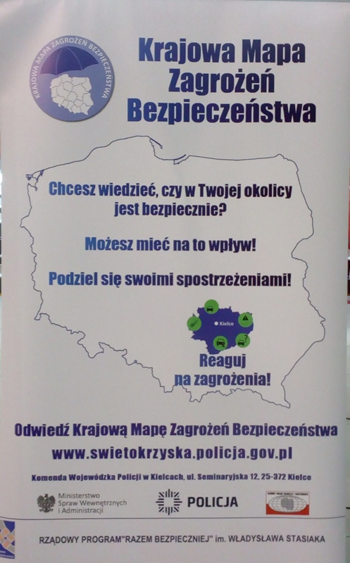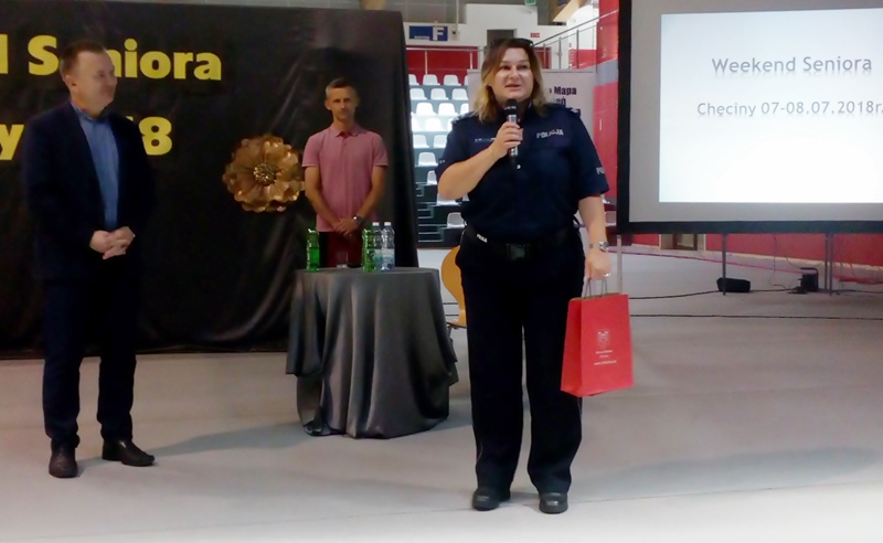 Pani Młodszy Inspektor Naczelnik Wydziału Prewencji z Komendy Miejskiej w Kielcach przedstawiła prezentację multimedialną pt. „Bezpieczny Senior”, w której zaprezentowała przykłady różnych sposobów, jakimi posługują się oszuści. Są to metody: na wnuczka, policjanta, pracowników biura CBŚP oraz pracowników administracji. Przedstawiła dane dotyczące zdarzeń kwalifikowanych jako oszustwa różnymi metodami: w poszczególnych miejscowościach województwa świętokrzyskiego, według dni tygodnia i pory dnia. Uczuliła Seniorów, jak należy postępować, co powiedzieć komuś, kto być może próbuje nas oszukać. Zaprezentowała „Krajową Mapę Zagrożeń Bezpieczeństwa”, aplikację „Moja Komenda” oraz jak korzystać z nich w różnych dziedzinach życia. Różne przykłady ich zastosowania pokazane były na filmie.