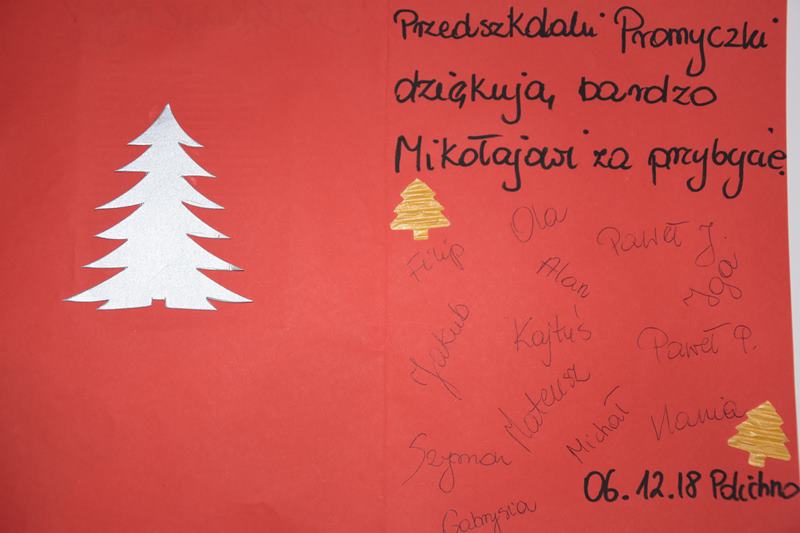 6 grudnia św. Mikołaj członek Chęcińskiego Uniwersytetu Trzeciego Wieku, jednocześnie jeden z naszych wolontariuszy, wraz ze swoją towarzyszką odwiedził dzieci przedszkolne w Polichnie. Zima nie spisała się i brakuje śniegu, więc Mikołaj przyjechał samochodem nie saniami. Bardzo bystre przedszkolaki zauważyły to od razu.