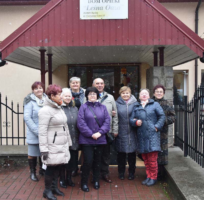 12 grudnia 11 osobowa grupa wolontariuszy z Chęcińskiego Uniwersytetu Trzeciego Wieku odwiedziła pensjonariuszy „Leśnej Oazy” w Czerwonej Górze. Data i godzina spotkania została wcześniej ustalona z kierownictwem domu opieki przez naszą koleżankę Martę.