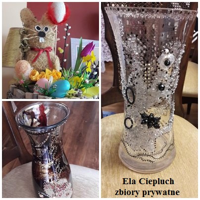 Zajęcia prowadziły dwie sympatyczne i bardzo cierpliwe Panie. Zdobienie szkła, świąteczne bombki, jajka wielkanocne i karnawałowe maski przypadły w udziale Pani Mirosławie Dołęgowskiej-Wysockiej a wiklina papierowa i kwiaty z bibuły Pani Urszuli Porzucek. Panie z wielką cierpliwością tłumaczyły sposób wykonania i zachęcały do dokończenia zaczętej pracy, ponieważ często brakowało nam wytrwałości.