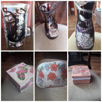 Początkowo na zajęcia przychodziła dość liczna grupa naszych studentów. Pod koniec zajęć pozostali najwytrwalsi. Nauczyliśmy się bardzo dużo i odkryliśmy drzemiące w nas talenty. Często człowiek nie wie, że potrafi wykonać bardzo piękne prace. Zachętą były wypowiadane przez Panią Mirkę słowa " róbmy tak, jak nam w duszy gra" . To powiedzenie sprawdzało się w trakcie ozdabiania szkła. Trzymaliśmy w ręku przezroczysty wazon i po przyklejeniu paru ozdobnych kamyczków lub pomalowaniu farbą nasze pomysły się kończyły. Wtedy wkraczała Pani Mireczka, która namalowała parę kresek i już wiedzieliśmy co dalej. Zaznaczam, że przychodził na zajęcia jeden Pan. Nasze prace będzie można zobaczyć na wystawie w dniu zakończenia roku akademickiego 2018/2019 . Starościna grupy Koleżanka Krysia Wójcikowska zawsze pilnowała by była podpisana lista obecności i by były wszystkie potrzebne materiały. Pani Mirosława Dołęgowska - Wysocka zaszczepiła w kilku z nas artystycznego bakcyla. Malujemy wazony, wyszywamy, dekorujemy przedmioty techniką dekupage i naprawdę mamy się czym pochwalić. Niektóre rzeczy wykonane przez nas zdobią nasze mieszkania i nie tylko nasze.