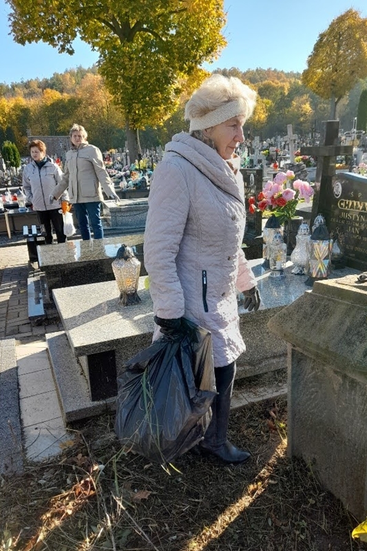 25 października 2021 r. grupa wolontariuszek z Chęcińskiego Uniwersytetu Trzeciego Wieku odwiedziła Cmentarz Parafialny w Chęcinach. Od kilku lat stało się to naszą tradycją. Niewielka grupa wolontariuszy przed 1 listopada zbiera się przed cmentarzem, aby posprzątać zabytkowe mogiły z XVIII i XIX wieku.
