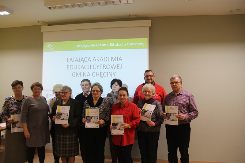 W dniu 11.12.2017 roku pierwsza grupa słuchaczy 65+ zakończyła szkolenie zorganizowane w ramach projektu „Latająca Akademia Edukacji Cyfrowej – podnoszenie kompetencji cyfrowych osób powyżej 18 roku życia”.