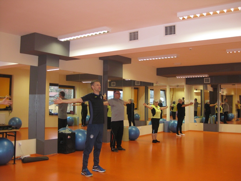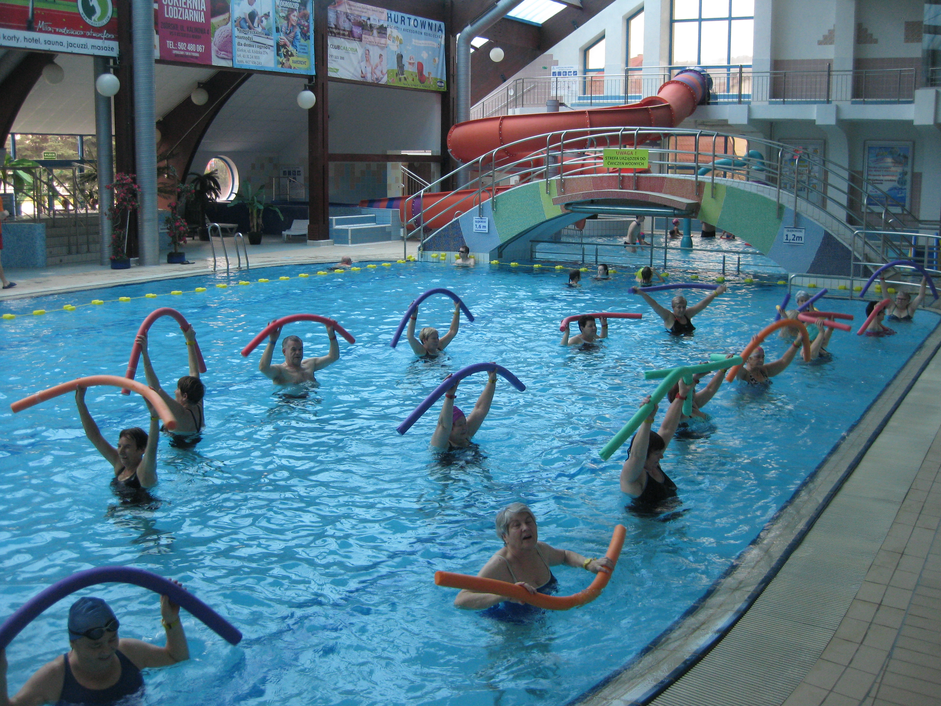 Fotorelacja z aktywności fizycznej (ćwiczenia w wodzie na basenie "Perła" w Nowinach i ćwiczenia w hali C K i S