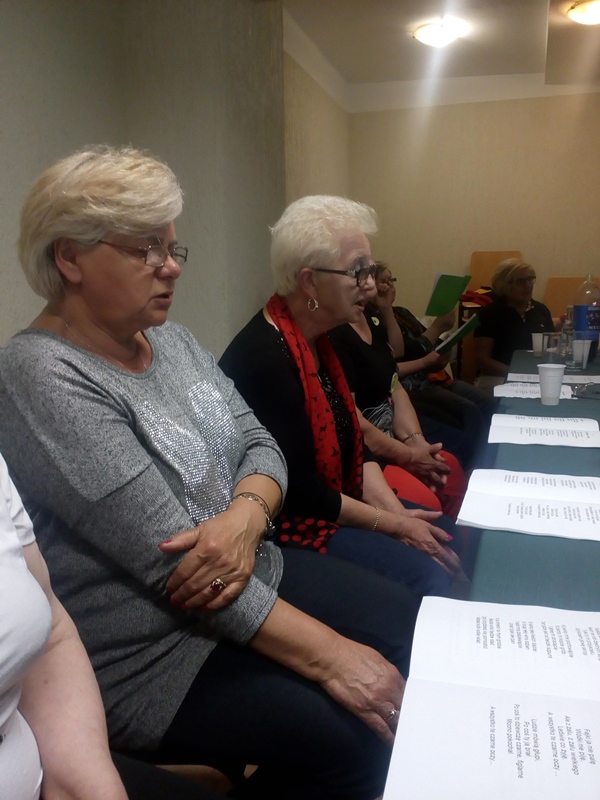 Zwiedziliśmy drewnianą Kaplicę Zdrojową ufundowaną przez Załuskich w 1895 roku. Zwróciliśmy uwagę na ołtarz główny neogotycki, drewniany z Matką Boską Uzdrowienia Chorych w otoczeniu świętych. W części wejściowej jest niewielka wystawa świętych i błogosławionych z Podkarpacia. Przy wejściu jest tablica ku pamięci poległych w czasie wojny parafian Iwonicza oraz Krzyż Misyjny. Religijno – historyczno – przyrodniczy spacer zakończyliśmy na placu nowego kościoła. Tym razem zupełnie zawodowym przewodnikiem okazała się koleżanka Marta Syzdół. Po obiadokolacji nasza wspaniała organizatorka wyjazdu Zosia Puchała zaplanowała nam biesiadę w altance obok pensjonatu. Z powodu nagłej burzy altankę zastąpiła świetlica. I tu w bardzo miłej, wesołej atmosferze mogliśmy wykazać się swoimi zdolnościami wokalnymi. Śpiewnik opracowany przez Zosię Puchałę i Ewę Kot okazał się bardzo przydatny. Jednak największą atrakcją tego wieczoru były imieniny kolegi Stasia Króla. Około godz.21 roześmiani i weseli wróciliśmy do swoich pokoi.
