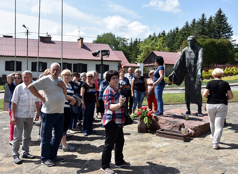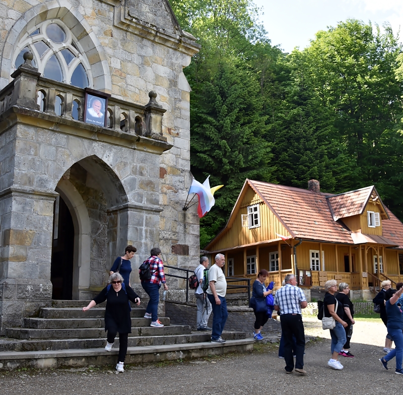 W dniach 9 – 10 czerwca 1997 roku ziemię dukielską nawiedził Jan Paweł II. W pierwszym dniu odwiedził Sanktuarium a następnego dnia podczas mszy św. w Krośnie dokonał kanonizacji św. Jana z Dukli. Przed murami Sanktuarium stoi pomnik św. Jana Pawła II, św. Jana z Dukli i Krzyż Pojednania. Ramiona krzyża oplecione dłońmi poległych żołnierzy różnej narodowości i różnego wyznania. Na tablicach istnieje napis w kilku językach - „Krzyż znaczy – życie jest silniejsze niż śmierć” Jan Paweł II. Podążając śladami Jana z Dukli udaliśmy się na wzgórze Zaświt do pustelni, gdzie zakonnik miał w młodości spędzić kilka lat życia. Odwiedziliśmy chatę pustelnika, która stanowiła jego miejsce odosobnienia. Starano się odtworzyć warunki, w jakich mógł mieszkać św. Jan z Dukli. Wąska prycza, drewniany stół, krzesło, miska do mycia. Drogą prowadzącą przez las i pod górę należało przejść około 300 metrów. Zmęczeni, ale uśmiechnięci dotarliśmy do celu. Jak głosi legenda św. Jan objawił się Marii Amelii z Bruhlów Mniszkowej, właścicielce Dukli we śnie, polecając jej wybudować na miejscu swej pustelni kaplicę. Tak też się stało. Obecna kaplica wzniesionaz początkiem XX wieku jest już trzecią w historii tego miejsca. Znajduje się w niej polichromia przedstawiająca życie św. Jana. Namalowana została przez sanockiego malarza Władysława Lisowskiego. Obok świątyni znajduje się drewniany dom rekolekcyjny oraz taras ze sztuczną grotą. Na ścieżkach wokół kaplicy rozmieszczono kapliczki Drogi Krzyżowej. Jednak ze względuna opady, które miały miejsce dzień wcześniej, dla naszego bezpieczeństwa nie przeszliśmy tą trasą. Uwieńczeniem wędrówki śladami św. Jana z Dukli było źródełko zwane „złotą studzienką”. Według tradycji pątników z Polski i zagranicy, woda z tego źródełka przynosi ulgę w wielu dolegliwościach i chorobach. Zaopatrzeni w wodę wróciliśmy do autokaru. Wycieczkę zakończyliśmy na Słowacji dokonując licznych zakupów.