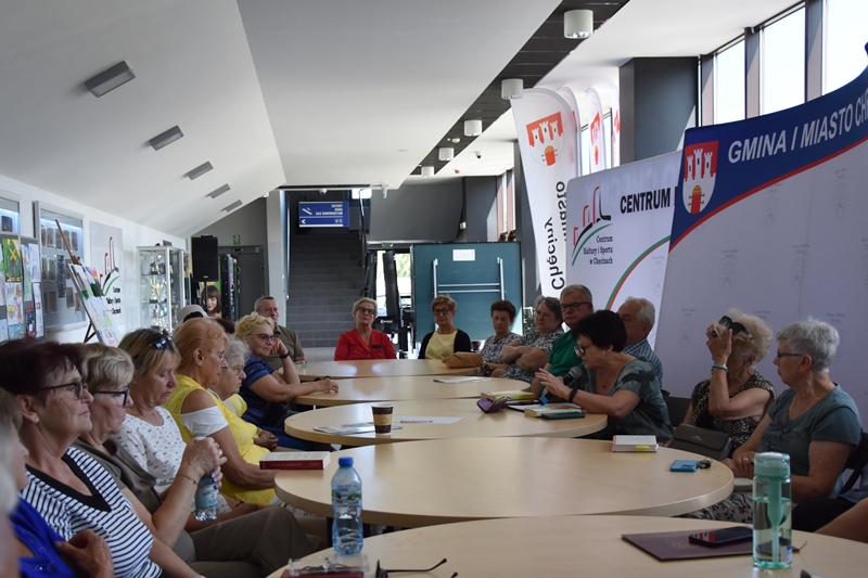 To już należy do tradycji, że zamiast w parku spotykamy się w Centrum Kultury i Sportu w Chęcinach. Niestety obecna aura pogodowa nie sprzyja spotkaniom w parku. Studenci są bardzo obowiązkowi, o wyznaczonej porze, czyli godz. !6.00 zasiadają przy stolikach w hali, aby uczestniczyć w zaplanowanych zajęciach. Temat spotkania to „Książka na lato”. Jesteśmy taką grupą seniorów, która bardzo lubi czytać książki. Można nas spotkać w Miejskiej Bibliotece w Chęcinach wychodzących z kilkoma książkami w ręku. Tematyka jaką interesują się studenci jest bardzo różnorodna, od powieści historycznych, po obyczajowe, przyrodnicze, przygodowe, romanse czy kryminały. Nasze koleżanki zachęcały do przeczytania danej książki, czytając ciekawe fragmenty i przedstawiając przebieg zdarzeń tak, aby słuchacz miał ochotę od razu sięgnąć po tę książkę. Przeważała literatura polska, obyczajowa, która jest bliska naszemu sercu. Pojawiły się także książki przedstawiające historię naszego narodu. Koleżanki tak pięknie opowiadały o przeczytanych książkach, że słuchaliśmy w wielkim skupieniu. Aby tradycji stało się zadość wspominaliśmy książki z naszego dzieciństwa. Podczas poprzedniej „Środy Parkowej” dominowały zabawy z naszych dziecięcych lat, a teraz opowiadaliśmy o tym co lubiliśmy czytać, często w ukryciu. Miło i wesoło spędziliśmy czas w gronie osób kochających literaturę. Dziękujemy osobom, które zachęcały do czytania książek, chociaż lato. Były to: Marta, Teresa, Aleksandra, Ewa, Elżbieta i Barbara.