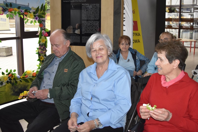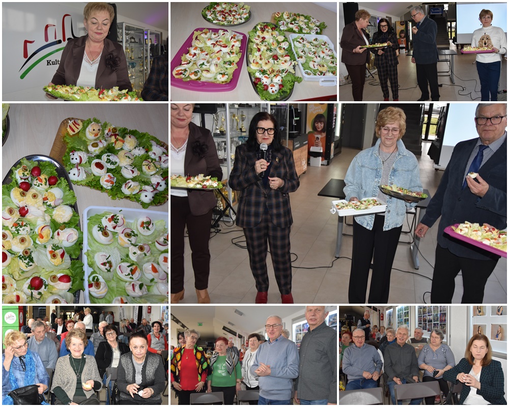 Przed wykładem mogliśmy podziwiać prace wielkanocne naszych uzdolnionych koleżanek: Teresy Jurkiewicz, Ewy Kasperek, Elżbiety Krzysztofek i Danuty Wróbel. Mogliśmy poczęstować się jajeczkiem przygotowanym przez Ewę Kasperek. Słodyczami poczęstowały Jubilatki