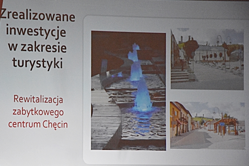 Mamy duży potencjał jako gmina turystyczna i z tego czerpiemy zyski. Zamek przynosi duże dochody do budżetu, w ostatni weekend zamek odwiedziło 10 tys. turystów. 22 kwietnia br. Chęciny znalazły się na liście UNESCO, co zwiększa jeszcze atrakcyjność turystyczną naszej gminy. Obiekty, takie jak: Niemczówka, Rynek, Pomnik Łokietka, Ścieżka Mnicha, Muzealna Izba Górnictwa Kruszcowego - to miejsca najczęściej odwiedzane przez turystów. Zabytkowe obiekty sakralne są odnowione, lub w trakcie konserwacji. Fundusze na ten cel są unijne lub ministerialne. Między innymi na renowację murów wokół Klasztoru Ojców Franciszkanów gmina zdobyła dofinansowanie w kwocie 300 tys. zł. Będzie również wymiana ogrzewania w klasztorze na pompy ciepła. Jesteśmy gminą atrakcyjną jeśli chodzi o budownictwo mieszkaniowe. W I kwartale br. wydano 250 pozwoleń na budowę domów. Ludzie wybierając miejsce na budowę domu patrzą na lokalizację, drogi dojazdowe, szkołę, przedszkole, czy żłobek. Pod tym względem konkurujemy z innymi gminami. Powstają nowe tereny budowlane. Miasto może się poszczycić nowymi perełkami. Nowa ulica J. Piłsudskiego stała się wizytówką miasta wraz z nowym posterunkiem policji oraz przylegającym do niej nowo powstałym parkiem miejskim im. Ojca Mateusza Korczaka. W parku znajdą miejsce do rozrywki i zabawy dzieci oraz miejsce do wypoczynku i spotkań osoby dorosłe i seniorzy. Będą strefy wypoczynku, ławeczki. Jedna z nich będzie upamiętniać zmarłego zasłużonego nauczyciela, przyjaciela Chęcińskiego Uniwersytetu Trzeciego Wieku - Andrzeja Kadłubka. Park będzie oświetlony i monitorowany. Przy ulicy J. Piłsudskiego stanie pomnik marszałka - bohatera narodowego.