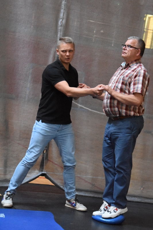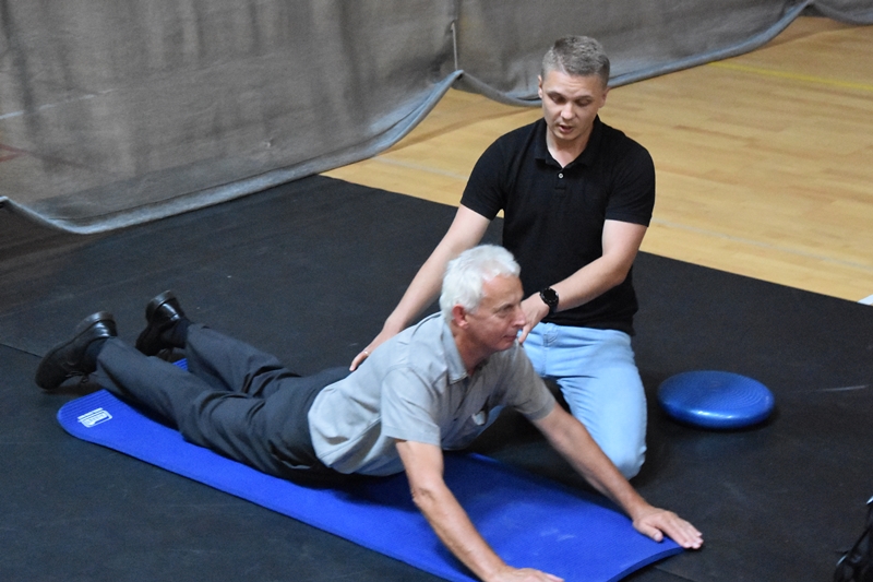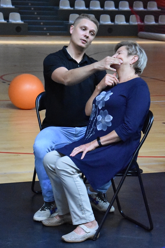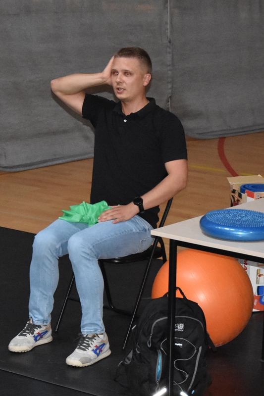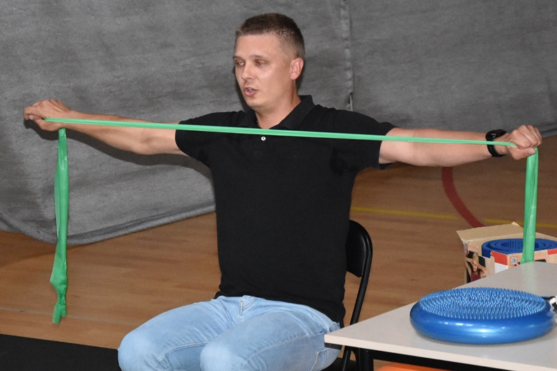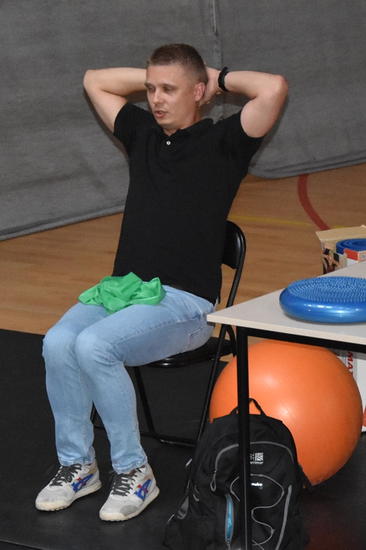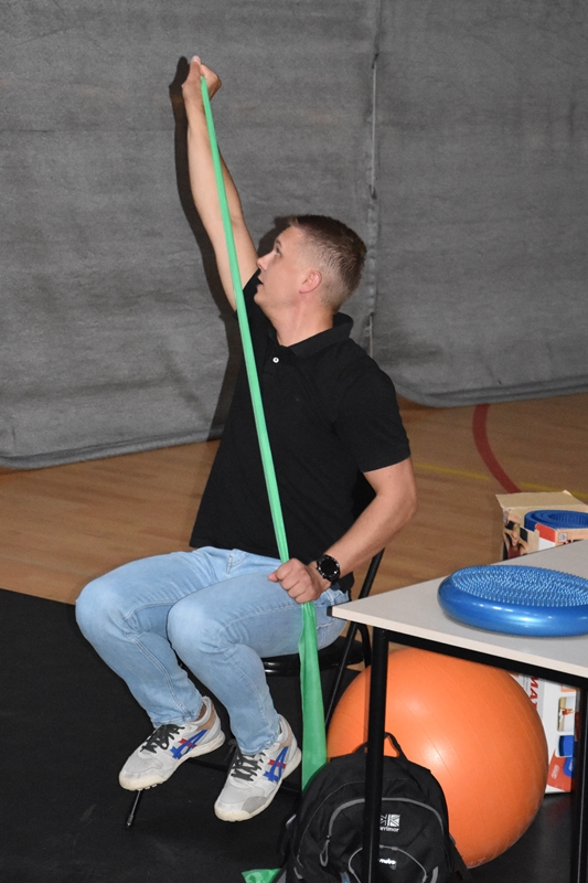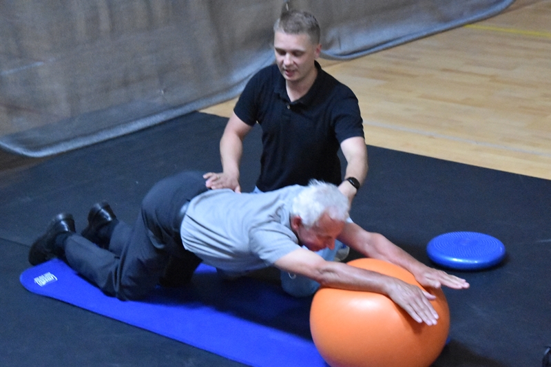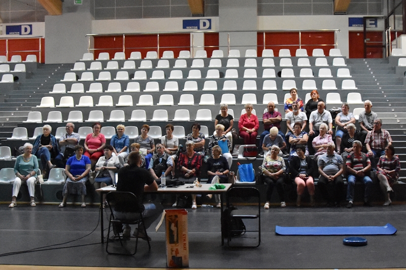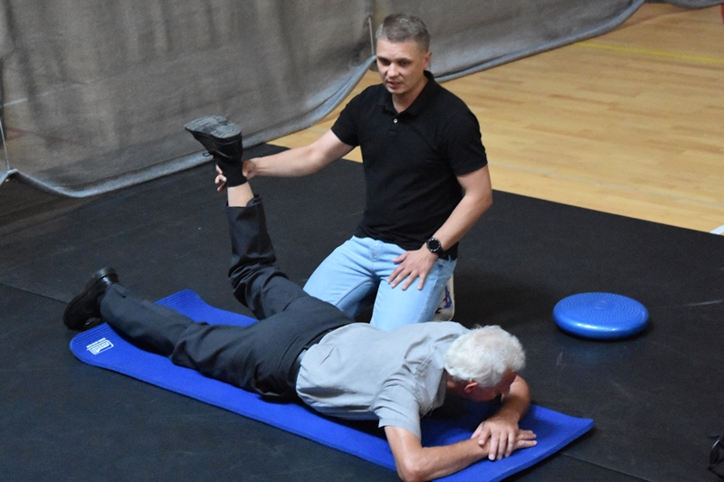 Korzyści dla zdrowia seniora płynące z uprawiania regularnej aktywności fizycznej: Wzmocnienie serca, polepszenie przepływu krwi w naczyniach krwionośnych; Poprawa ciśnienia tętniczego krwi; Zmniejszenie stężenia złego cholesterolu (LDL) i zwiększenie „dobrego” (HDL); Zmniejszenie ryzyka tworzenia zakrzepów i zatorów; Zwiększenie siły mięśni szkieletowych, wytrzymałości i sprawności ruchowej; Zachowanie koordynacji ruchowej, która zmniejsza ryzyko upadków; Zwiększenie gęstości kości przez co zmniejsza się zagrożenie osteoporozą; Polepszenie sprawności ruchowej układu oddechowego i lepszego utlenowania krwi oraz innych narządów np. mózgu i mięśni; Poprawa perystaltyki jelit i regulacja rytmu wypróżnień; Zmniejszenie ilości tkanki tłuszczowej; Poprawa samopoczucia fizycznego i psychicznego; Zmniejszenie poziomu stresu co przekłada się na lepszą jakość snu; Zmniejszenie ryzyka wystąpienia niektórych rodzajów nowotworów np. raka piersi itp. Światowa Organizacja Zdrowia (WHO) rekomenduje, aby osoby starsze podejmowały aktywność fizyczną na umiarkowanym poziomie przez 30 minut, co najmniej 5 razy w tygodniu. Aktywność fizyczna powinna zawierać następujące ćwiczenia: wytrzymałościowe – poprawiające wydolność tlenową np. spacer, jazda na rowerze, taniec, pływanie, nordic walking; siłowe, oporowe – ćwiczenia wzmacniające mięśnie z wykorzystaniem przyrządów np. taśm lub ciężarków; rozciągające tzw. stretching; równoważne i koordynacyjne – szczególnie ważne, ponieważ pomagają zmniejszać ryzyko upadków. Umiarkowana aktywność fizyczna w definicji WHO to taka, podczas, której jest się w stanie rozmawiać, lecz nie można śpiewać. Definicja została przyjęta przez wiodące ośrodki promujące zdrowie w Unii Europejskiej. Nawet najmniejsza forma ruchu jest lepsza niż żadna! Każda osoba powinna unikać unieruchomienia i długich okresów w pozycji siedzącej. Należy pokonywać niektóre odcinki pieszo, korzystać ze schodów zamiast windy. Bardzo ważne jest, aby uprawiać aktywność fizyczną, która sprawia nam przyjemność. Dla uzyskania większych korzyści zdrowotnych, dopuszcza się wydłużenie czasu ćwiczeń do pięciu godzin tygodniowo. Wydłużenie czasu ćwiczeń powyżej pięciu godzin powinno się skonsultować z lekarzem lub fizjoterapeutą. Wpływ aktywności fizycznej w wybranych jednostkach chorobowych: osteoporoza, cukrzyca, reumatoidalne zapalenie stawów (RZS), zmiany zwyrodnieniowe stawów, dyskopatia (rwa kulszowa). Osteoporoza jest chorobą szkieletu prowadzącą do złamań kości, które mogą wystąpić nawet po niewielkim urazie. Osteoporoza pierwotna – konsekwencja starzenia się układu szkieletowego. Rozwija się u kobiet po menopauzie oraz u mężczyzn w podeszłym wieku. Przyspiesza ją: zła dieta, palenie papierosów, nadużywanie alkoholu, mała aktywność fizyczna, niedostateczna ekspozycja na światło słoneczne. Osteoporoza wtórna – występuje rzadziej. Jest wynikiem innych chorób lub stosowania niektórych leków. Cukrzyca objawia się nieprawidłowym poziomem glukozy we krwi. Jej objawy to: duże pragnienie, częste oddawanie moczu, duży apetyt, utrata masy ciała, zmęczeni, senność. Objawy hipoglikemii: ból głowy, wilczy głód, senność, zimny pot, osłabienie, kołatanie serca,drżenie rąk, uczucie niepokoju, utrata przytomności. Reumatoidalne zapalenie stawów (RZS) przewlekła choroba tkanki łącznej o immunologicznym podłożu. Zmiany najczęściej zaczynają się w drobnych stawach rąk i stóp. Objawy:sztywność i ból stawów; wrażliwość na ucisk; obrzęki stawów; zmniejszenie ruchomości stawów; zaczerwienienie skóry wokół stawu; zniekształcenie stawów. Leczenie farmakologiczne, glikortykosteroidy i biologiczne. Choroba zwyrodnieniowa choroba przewlekła. Przyczyną jest brak równowagi pomiędzy niszczeniem a odbudową chrząstki stawowej. Objawy: strzykaniai trzaski podczas poruszania się, zgrzytanie w stawach, sztywność stawów, ograniczenie ruchomości, zniekształcenie obrysów stawów, na zdjęciach RTG pojawienie się narośli (osteofitów). W przebiegu choroby wyróżnia się dwa okresy: remisji (ból tylko podczas ruchu) i zaostrzenia, ból, sztywność i obrzęk odczuwane w spoczynku. Przyczyny: genetyczne, niedostateczne ukrwienie stawów, nadwaga, czynniki zawodowe i sporty wyczynowe. Leczenie farmakologiczne i operacyjne. Przeciwwskazania bezwzględne do aktywności ruchowej: - Uszkodzenie mięśnia sercowego, wady serca; - Kardiomiopatia; - Tętniak aorty; - Znaczny przerost mięśnia sercowego; - Dusznica bolesna; - Nadciśnienie tętnicze nie regulowane farmakologicznie; - Zaburzenia rytmu serca pojawiające się podczas wysiłku; - Niewyrównana cukrzyca; - Stan zapalny w organizmie.